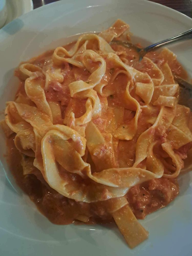 fresh pasta, shrimp and sea scallops in lobster infused white wine cream sauce